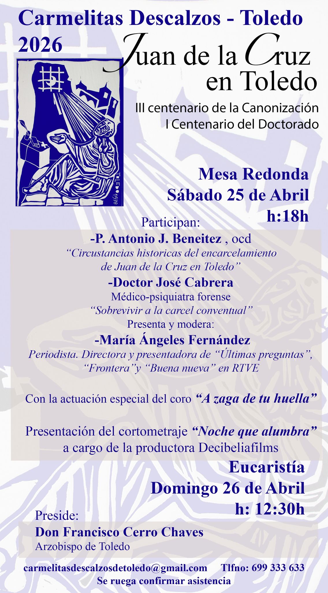Más información: carmelitasdescalzosdetoledo@gmail.com (699 333 633)