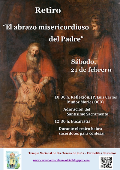 El próximo 21 de febrero, en el Templo Nacional de Santa Teresa de Jesús, de los Carmelitas Descalzos, el p. Luis Carlos Muñoz Mories OCD, ofrecerá una reflexión bajo el título «El abrazo misericordioso del Padre». El programa será el siguiente:
